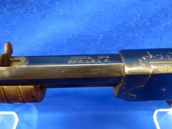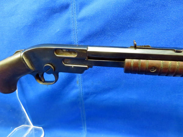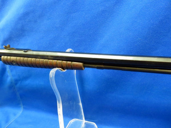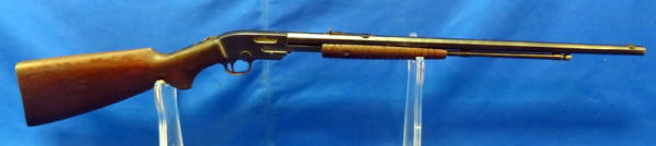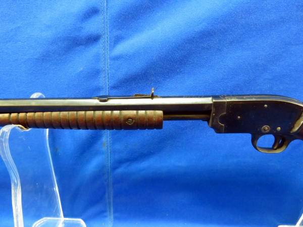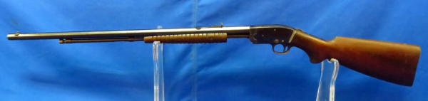 23.5" octagon Bbl.; action is really smooth; bluing on barrel is nice, receiver has some spotting; wood is solid and just has some finish loss in a few spots; overall a nice looking .22 pump; SN#16151