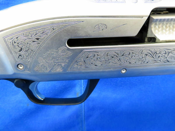 High detail factory engraved receiver; has been fired but very little and is in near mint condition; 30" vent-ribbed BBL; has 6 chokes; factory hard case; 2.75" & 3" chamber; SN#115ZY09117