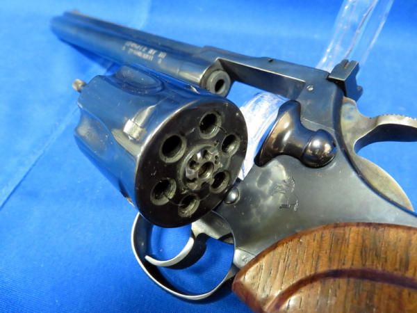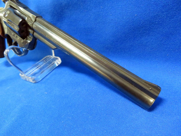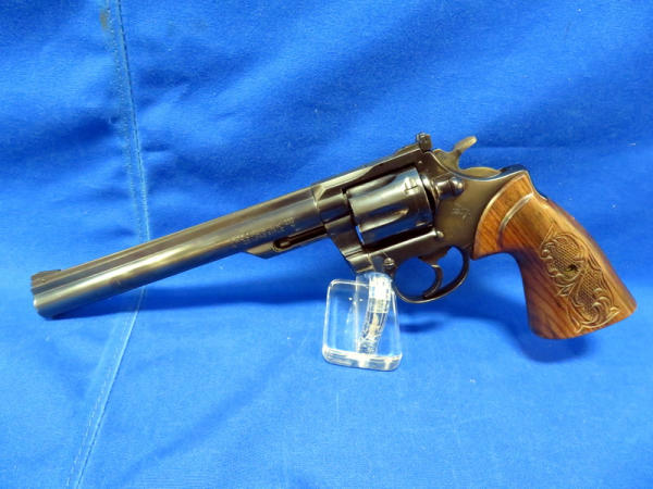 8" BBL; very nice finish & near mint; appears almost unfired; has wood engraved target grips; TT, TH; nice gun;