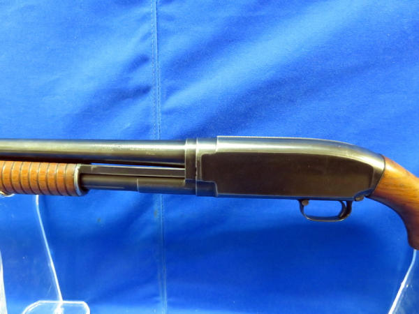 30" round BBL; 2.75" chamber; FC; bead sight; smooth pump action; overall bluing is nice; wood is nice w/good finish; overall nice old shotgun! SN#446234