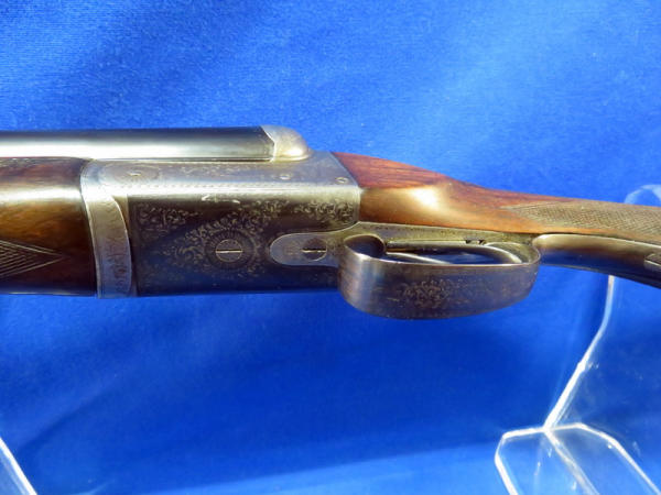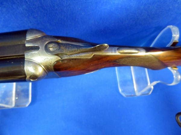 28" solid rib BBL's; cross bolt lock pin; smooth break action; bluing is very nice; wood is very nice w/great color and nice checkering; highly factory engraved receiver & trigger guard; two triggers; BSA marked barrels; 2.75" chamber; Left CC & Right MC; really nice looking older firearm!