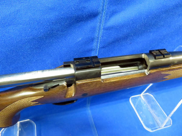 22" BBL; tip of barrel has some minor surface rusting but rest of bluing is very nice; action is smooth; wood is near mint w/great color; has scope mounts; nice gun; SN#E6740239