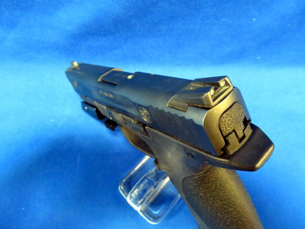 used but in nice shape; 4-1/8" barrel; black synthetic body; 2-clips; factory hard padded case; night sights; SN#MRJ3453