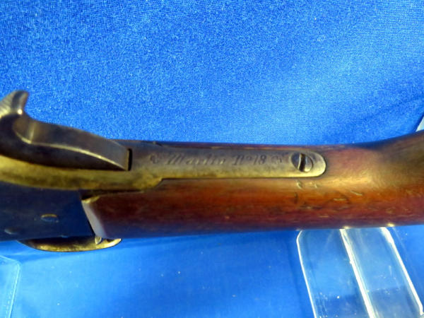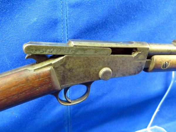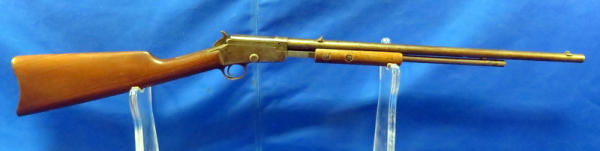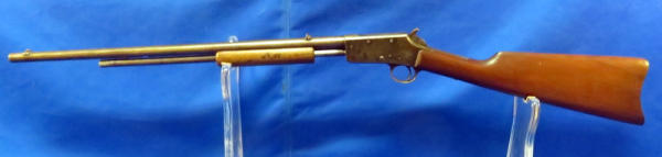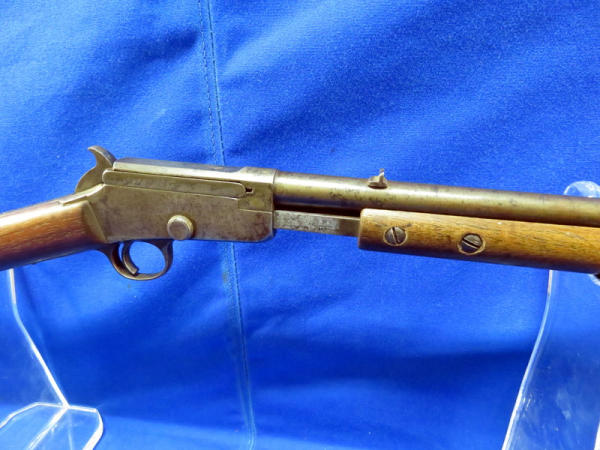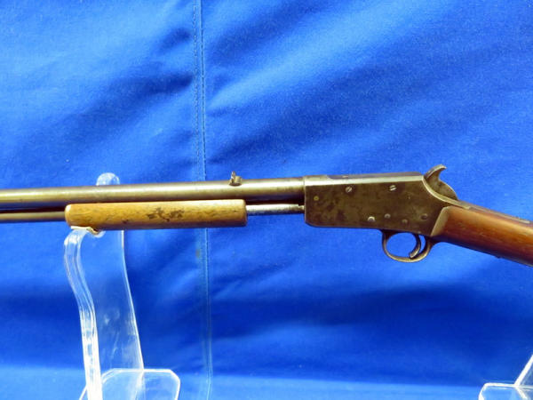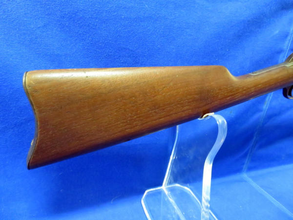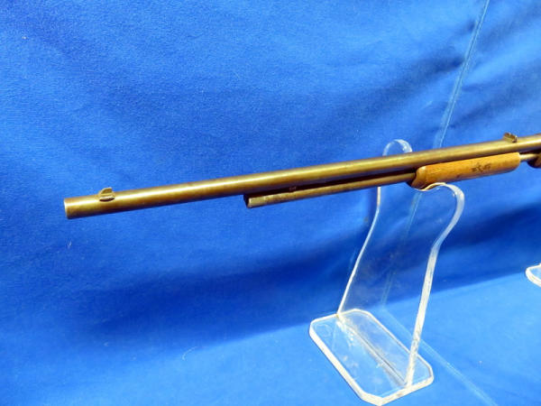 18.75" BBL; bluing is very worn & thin; crescent butt plate; pump action is stiff; wood is solid w/just some minor marks; no SN#