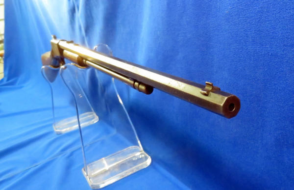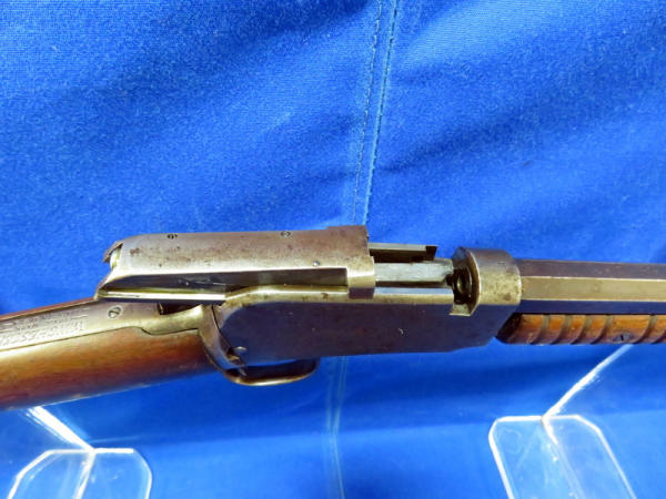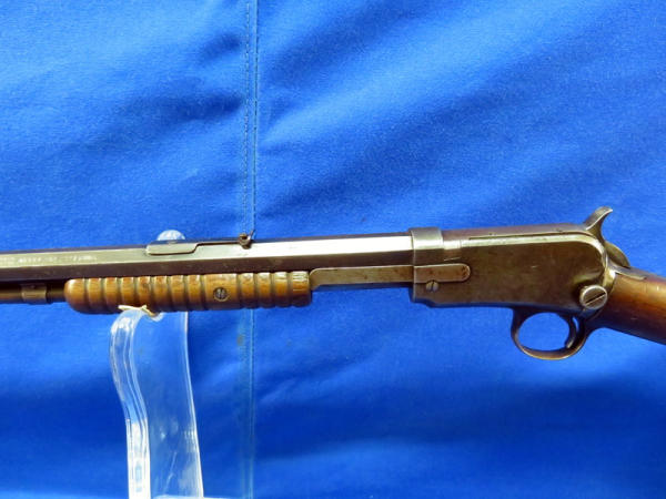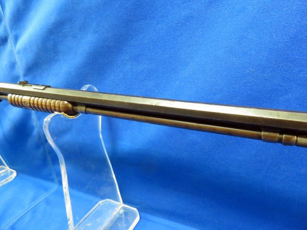 24" octagon BBL; bluing is spotty & thin overall; butt stock is loose and wiggles from receiver; action is smooth; crescent butt plate; forearm is cracked on bottom side; SN#800241