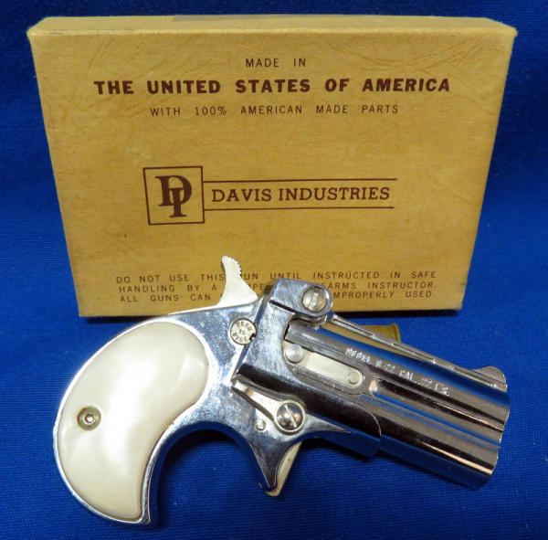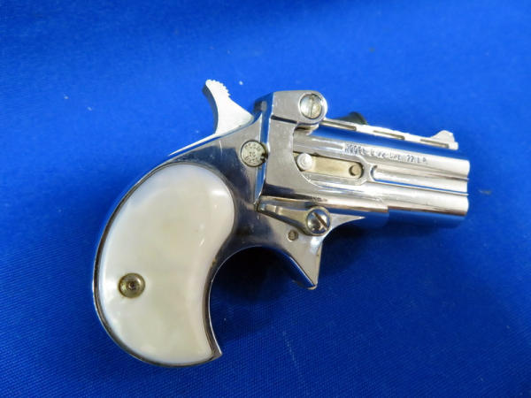 2.25" chrome barrels; mother of pearl grips; appears unfired and very nice condition; has original box & paper; SN#017162