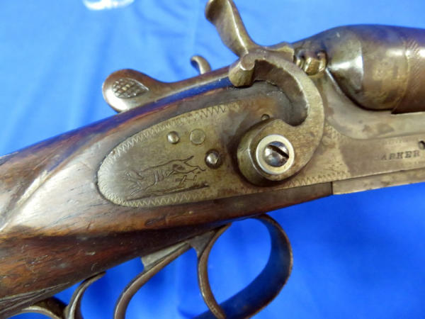 28" BBL's; bluing is thin; has factory engraved rabbit, hunter & dog on side of receiver; Belgium made; break action is smooth; wood has wear & dark finish; 2-triggers; 2-7/8" chamber; right MC, left FC; no SN#