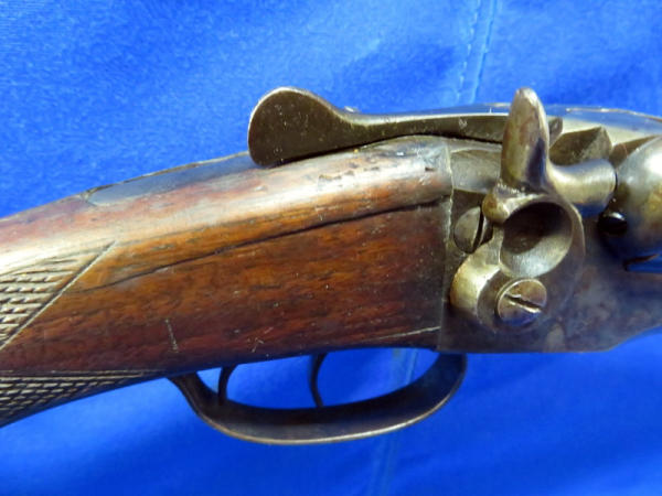 30" BBL's; break action smooth; overall finish is worn; hammers are stiff or non-working; stock has a crack behind trigger; 2-triggers; SN#59331