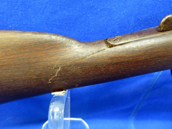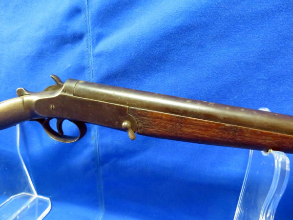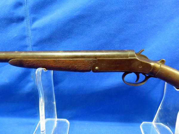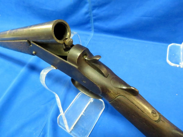 32" round BBL; break action catches; stock has been broke but looks glued, hard to see; a lot of wear; MC; no SN#