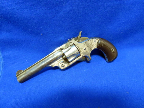 spur trigger; 3.5" solid-rib stainless barrel; finish is worn; original plastic grips; SN#34327