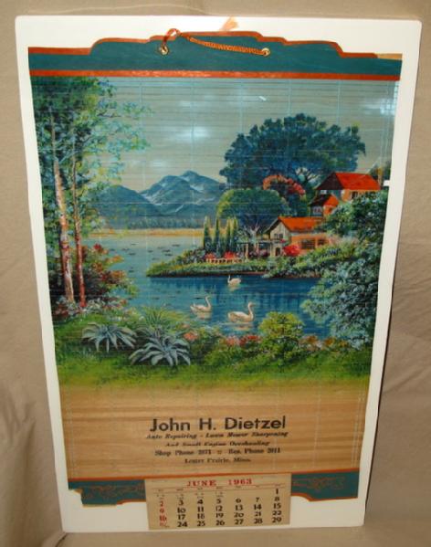 starts with June, has small tear on lower left corner of the calendar, 17" tall, shrink wrapped to a board