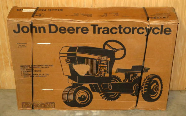 brand new in the box, never assembled, box is a little beat up, but toy I think is fine, hard to find pedal tractor
