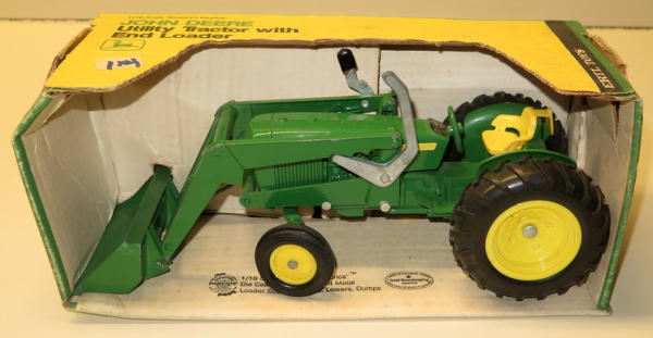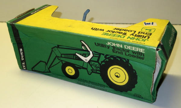 NIB, has some paint chips on the hood and bucket, toy is 90% condition, box has some crushing, rates 7 condition