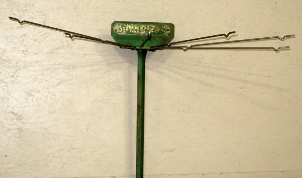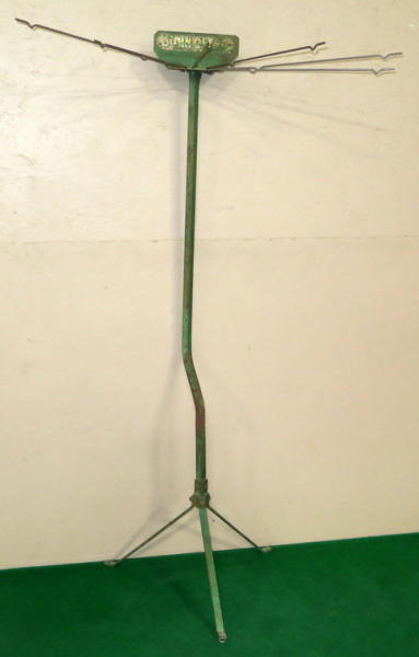 hard to find, 6' tall, has 6 metal rods that were designed to holder a poster on each one in the dealership, original paint has heavy wear, I think the rods are new ones, but match the originals, 76" tall overall
