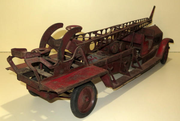 32" long, original paint is about 50", no hoses or ladders included, but overall pretty straight with nice patina