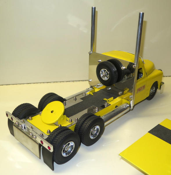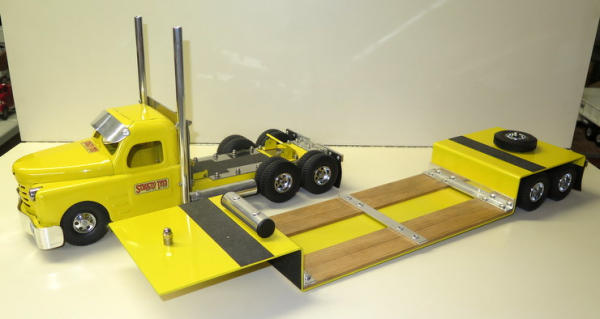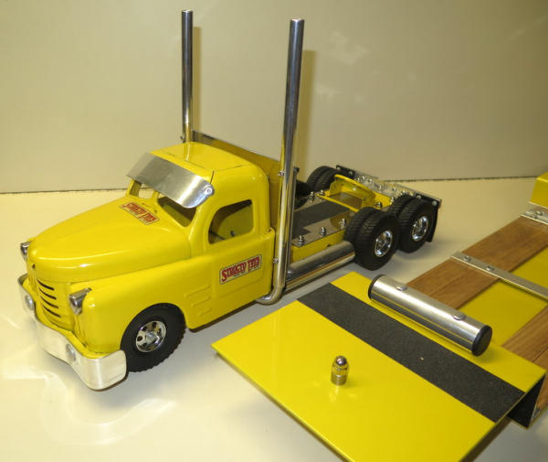 1950's Structo Cab that has been repainted and heavily customized, trailer is scratch built, very nicely done and a unique piece