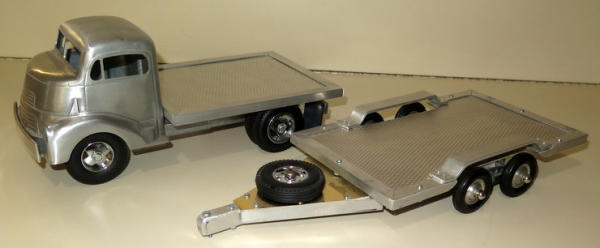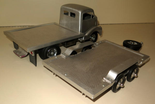 built from an original cab, aluminum bed is scratch built, trailer is all scratch built, finish or displays good as it is, unique, sells as a set