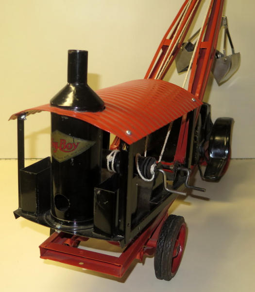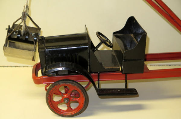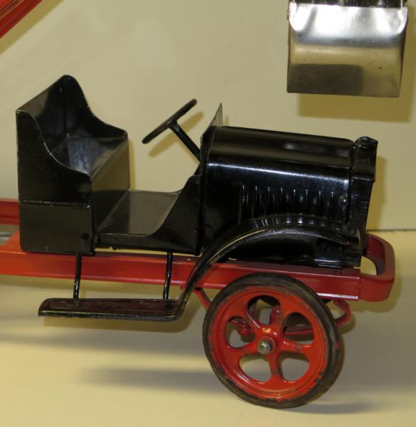good older repaint, open spoke rims, cast Iron grill, script running boards, neat toy, repaint has some wear