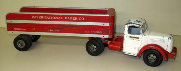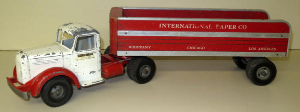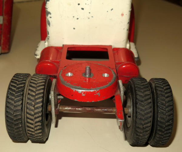 broken front bumper, back axle mounts on the truck are broken, trailer is original, good one to restore