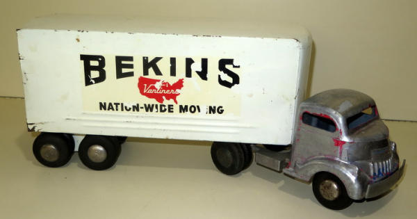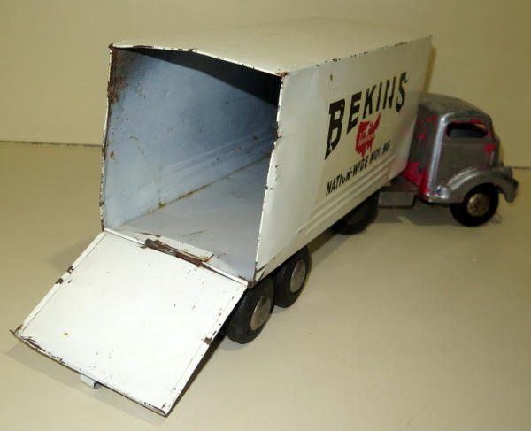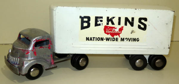 no paint left on the cab, trailer has been repainted, but I think the original decals were salvaged, trailer is a little bend, needs some restoration work