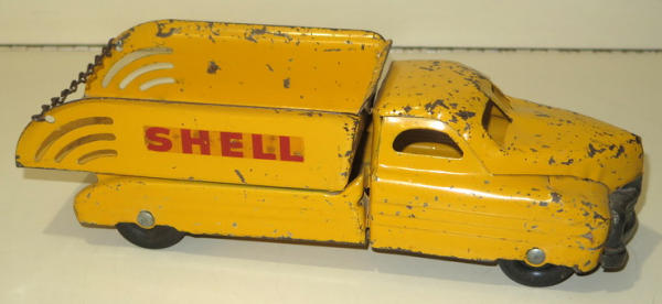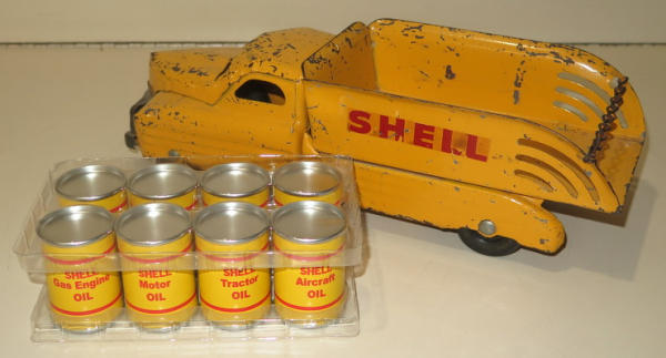 13" long, original paint is about 75%, includes a load of reproduction cans