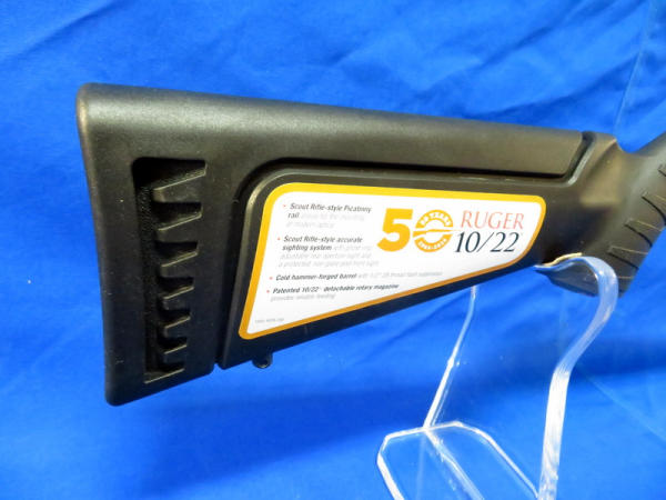 19" stainless barrel; picatinny rail; black synthetic stock; brand new never fired; has Ruger Modular Stock System; one clip; SN#0002-48728 - Phillip Steckly Collection