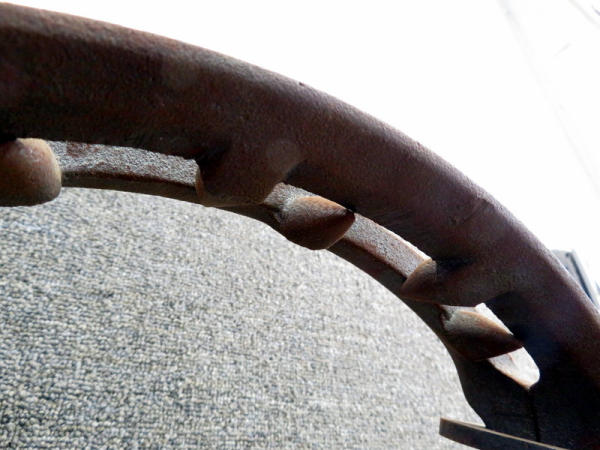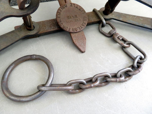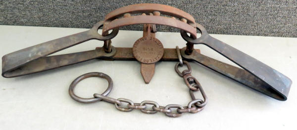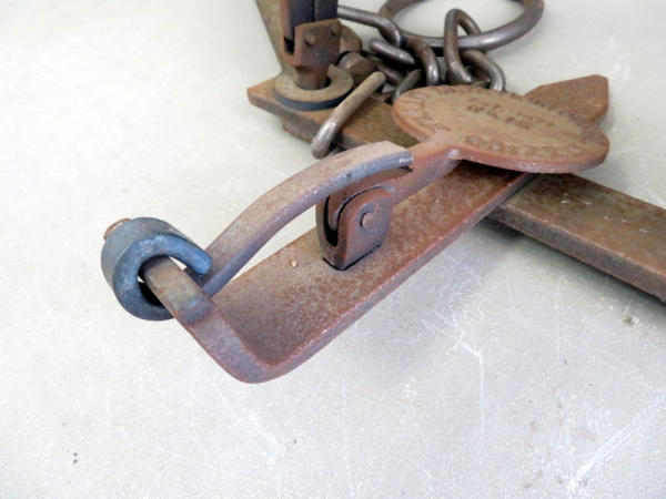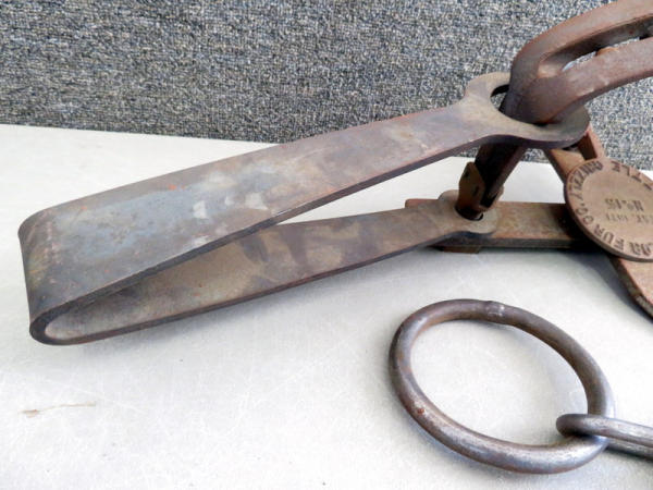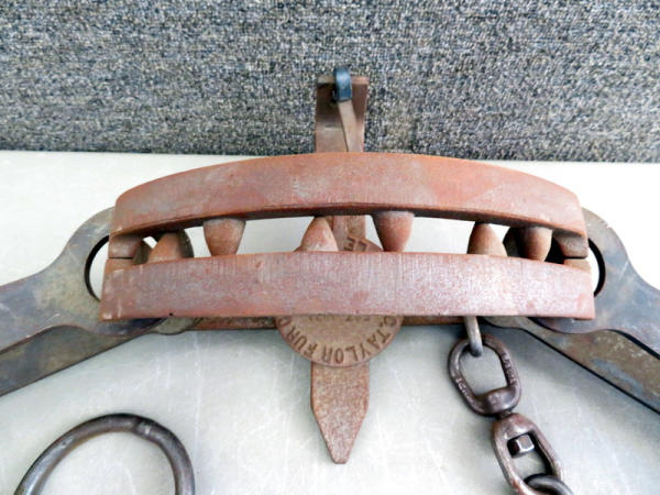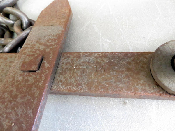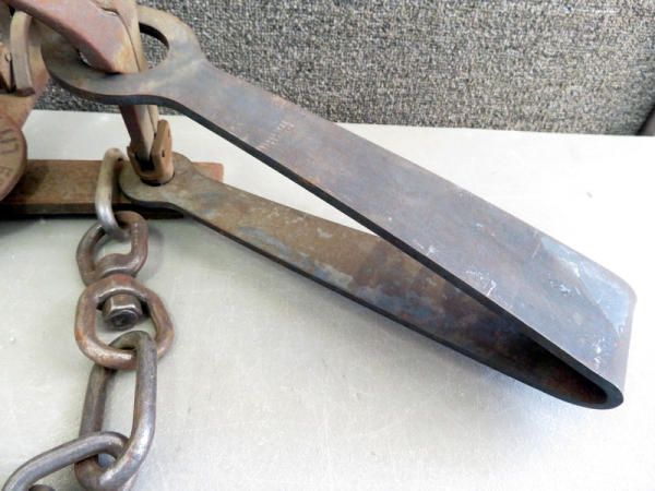 35" long; jaws 11"; chain is attached on frame; 9-links w/turnbuckle; nice condition