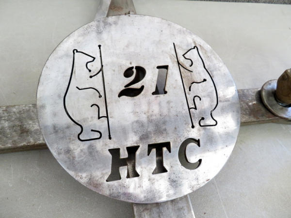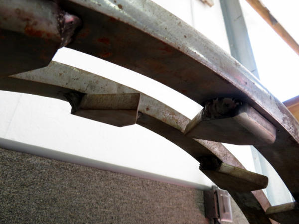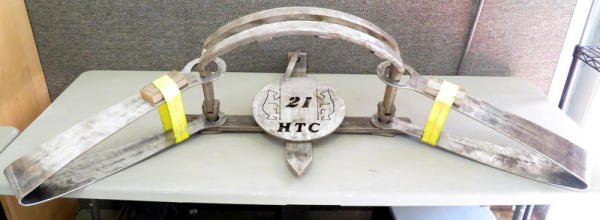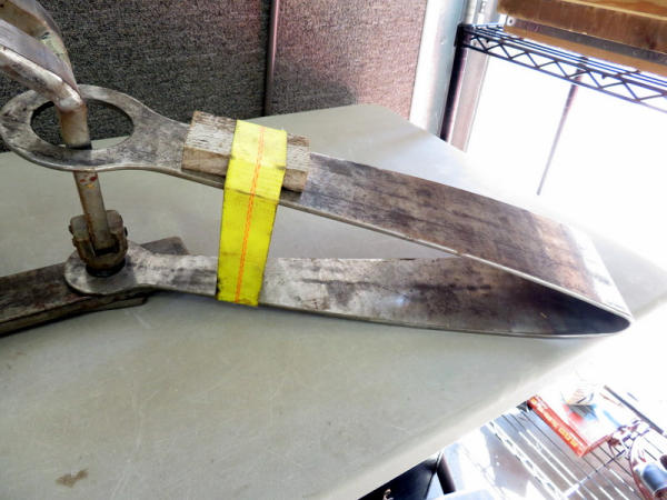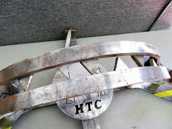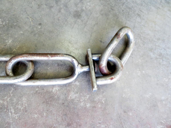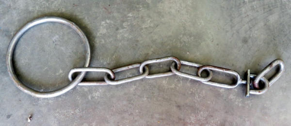 modern made and impressive looking! 69" long, 32" jaws; heavy steel; very nice condition; large chain is not connected; this item could be shipped but will be dismantled to do so; prefer local pickup
