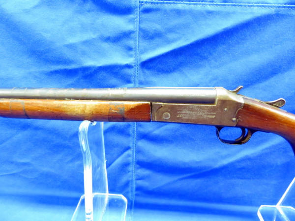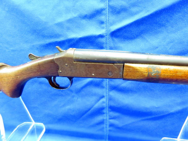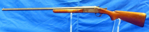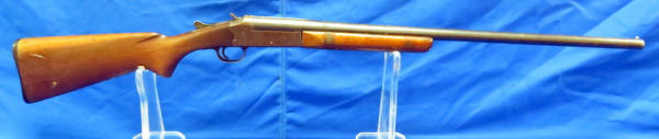 28" round BBL; gun has quite a bit of wear, cracks in stock behind receiver; break action is stiff; 2.75" chamber; MC; no SN#
