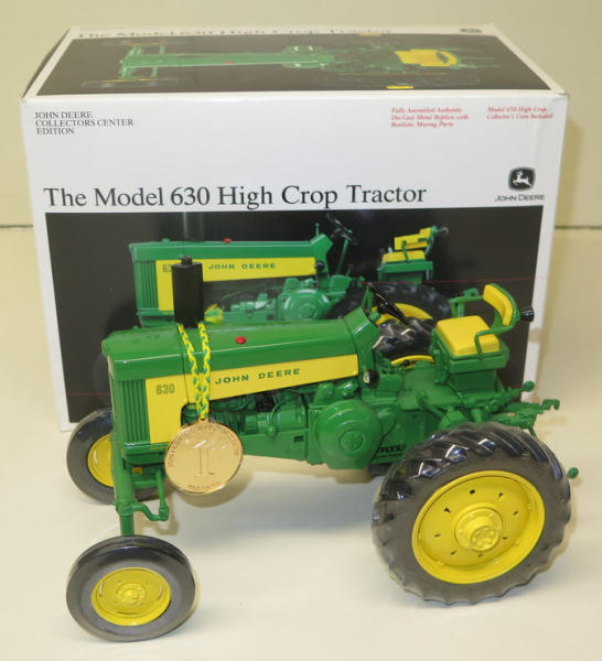 NIB, tractor has been out and displayed, a little dusty, includes both medallions, box has light wear
