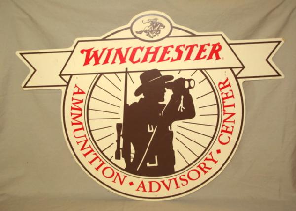 32"x24", one tip of a corner is damaged, otherwise nice, hard to find Winchester dealer sign