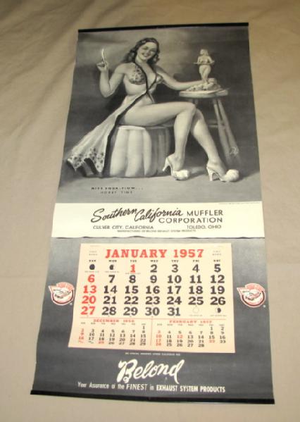 Excellent, has minor wear, full calendar pad with top & bottom metal bands, 23" tall