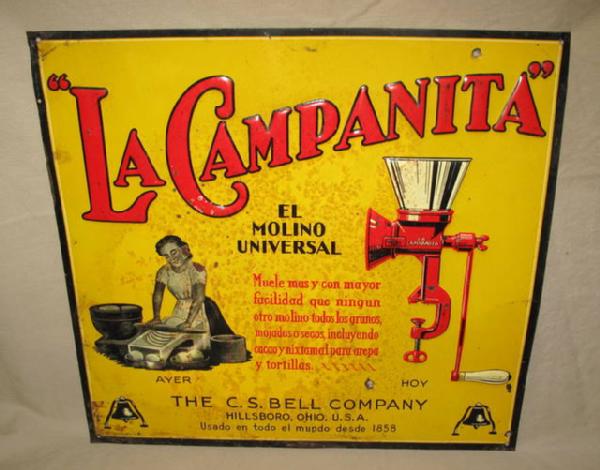 neat graphics, all in Spanish, has some discoloration, 15.75"x15.76"