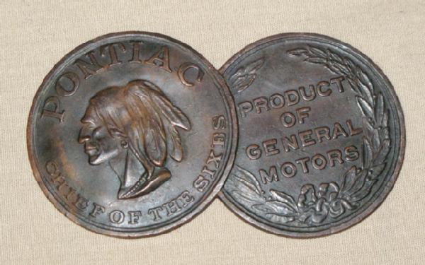 off the front of a 1920's or 30's Pontiac, 3.25" across