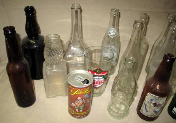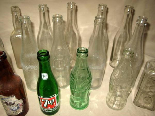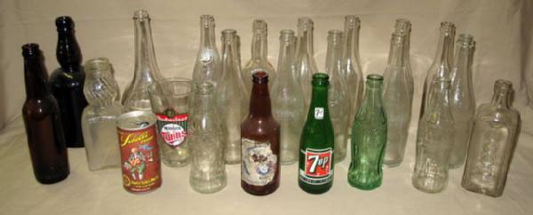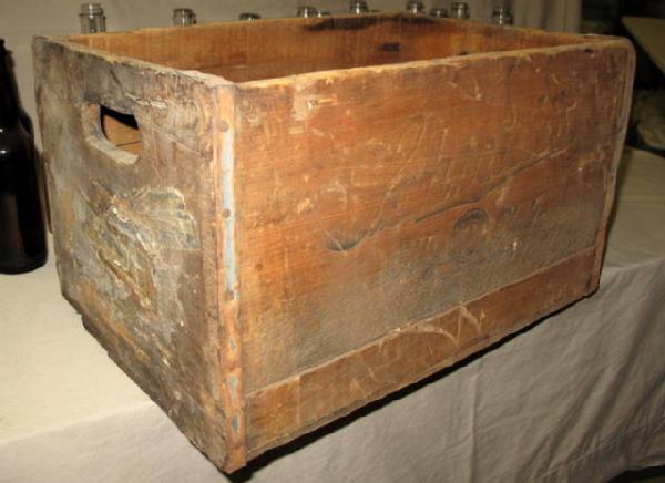 Crate has quite abit of wear, bottles are mostly just plain old bottles, but a few have advertising, all to go