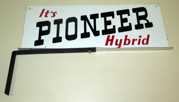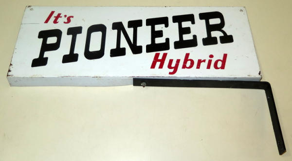 on new metal bracket, sign is 16"x6", has some scuffs and scratches, bottom mounted flange, hard to find