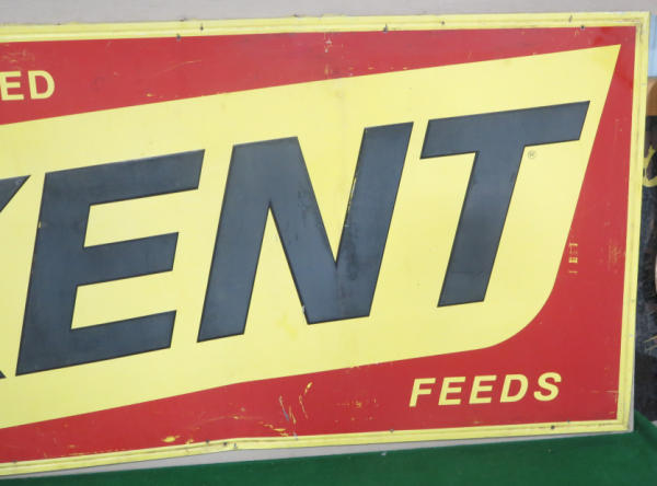 aluminum, faded and worn, 8'x4', wood backing is gone, good barn hanger