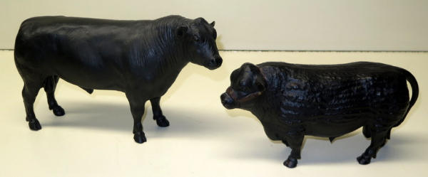 I think the larger one is a Breyer, not sure on the other, smaller one has some paint touch-ups, 2x the money