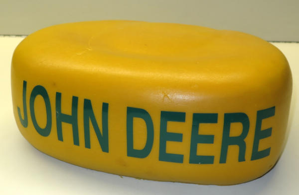 heavy foam kernel of corn hat (like a cheese head), has John Deere Vinyl lettering on the back side