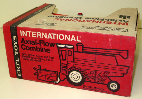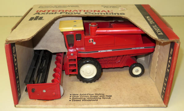 1/32nd Scale, has paint chips by the grain tank and cab top is discolored, box has some general wear