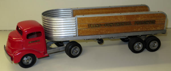 new paint on the cab, few light chips, trailer is good original with some play wear