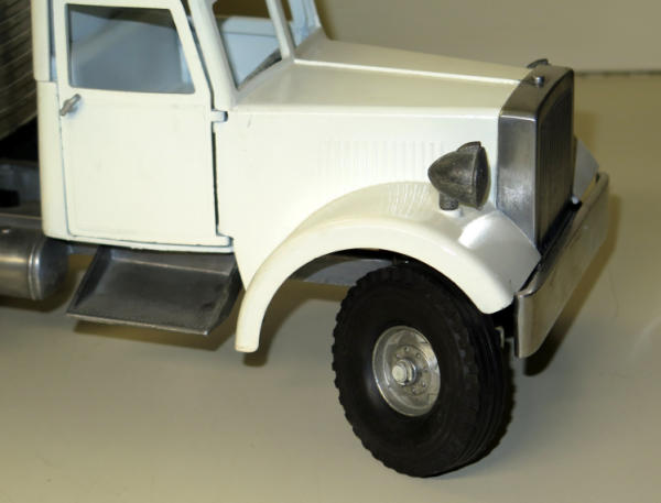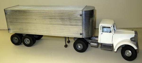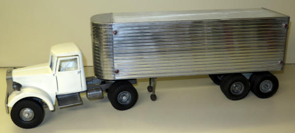 nicely repainted cab, needs some work to the front axle, trailer has been cleaned and partially polished, looks good