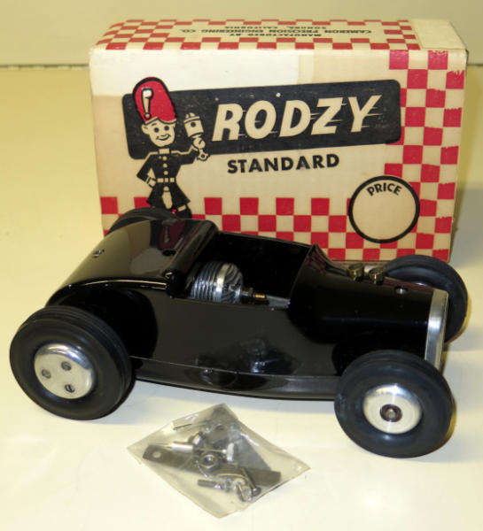 8" long, gas powered engine, mint in the box with original accessories and instructions