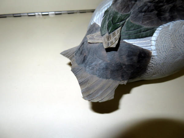 not sure what breed of duck this is; does have some damage on tip of tail & wing