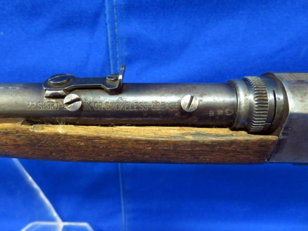 19" BBL; bluing is thin; damage to forearm and crack in stock behind receiver; SN#56789