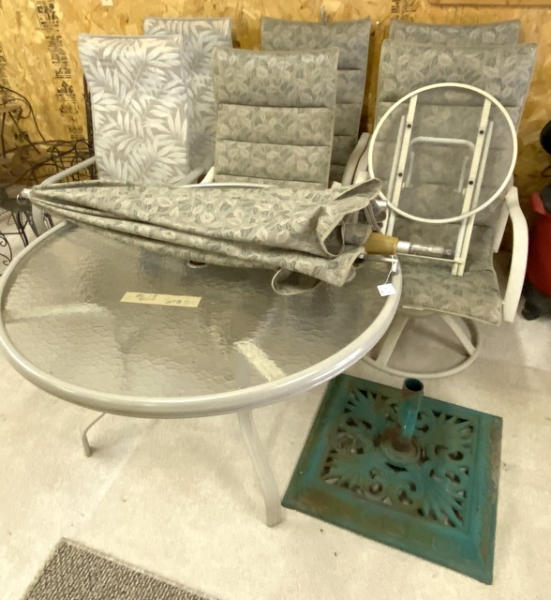 used, 4 chairs match, others are different, all look pretty good, all to go for one bid