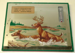 #898 - Box Lot of JD 2-leg Deer Items--Clips, Thermometers, Raingauges, & more