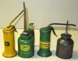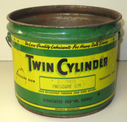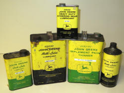 #923 - (3x) JD related Oil Cans--2-gal Twin-Cylinder, 1-gal J-D-D & 10lb J-D-D grease