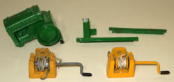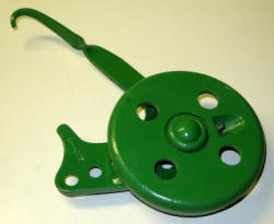 #922 - Box Lot of JD Iron Items--Oil Can Holder, Binder Crank, JD seat washers & more