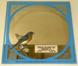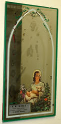 12"x23", has some age spots in the mirror, but good graphics; I think the dealer name is a later reproduction put into an old frame, but you be the judge